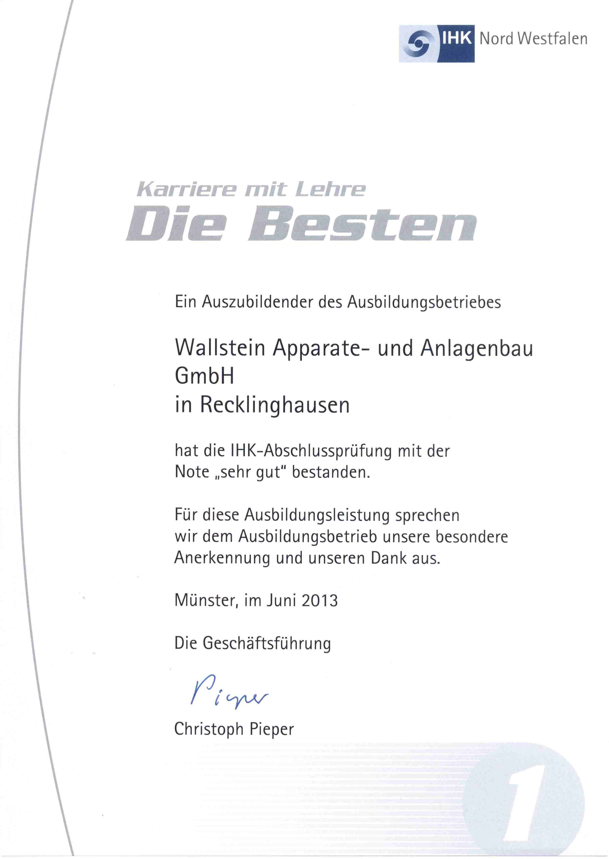 An dieser Stelle nochmals einen herzlichen Glückwunsch zu diesem tollen Erfolg. Wir freuen uns auf eine weiterhin gute Zusammenarbeit.