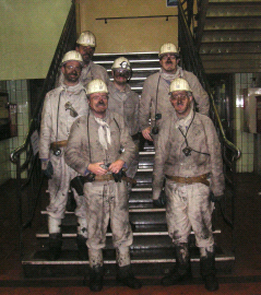 Als „Weißlinge" eingefahren, kamen wir alle geschwärzt wieder aus der Grube heraus. Bei Schnittchen und alkoholfreien Getränken haben wir noch weitere Informationen zur Arbeit im Bergbau erfahren. Ein Arbeitsplatz, den alle unter TAge arbeitenden Bergleute, trotz bzw. wegen aller erschwerten Anforderungen, immer wieder zu schätzen wissen. Er ist ein „besonderer" Arbeitsplatz mit hohen Anforderungen an das technische Verständnis und die körperliche Fitness.