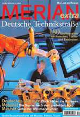Ein neues MERIAN-Extra-Heft macht genau das. Seit dem 04. Juni 2009 ist der außergewöhnliche Reiseführer für 5 Euro im Buchhandel zu haben. Thema ist Technik. Deutsche Technik. Beschrieben werden über 180 Ausflugsziele zu Forschern, Tüftlern, interessanten Hightech-Unternehmen, Sehenswürdigkeiten, technischen Museen, Ausstellungen und Industriedenkmälern.